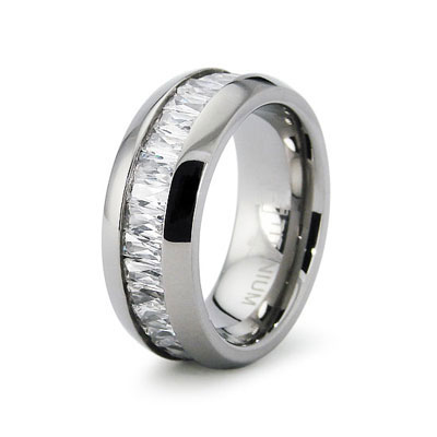 Baguette Cz Channel Set Titanium Wedding Ring.